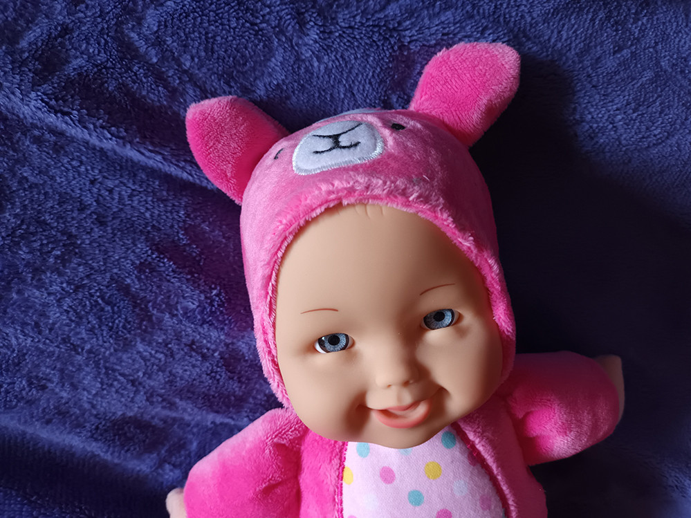 This doll features a soft body with a vinyl face. Its sewn-on clothes make it so cuddly, children can hold it as they sleep. Collect them all!