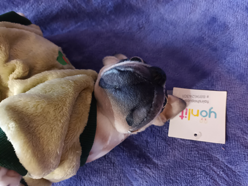 This lifelike french bulldog plush toy is the perfect gift for anyone who likes bulldogs.