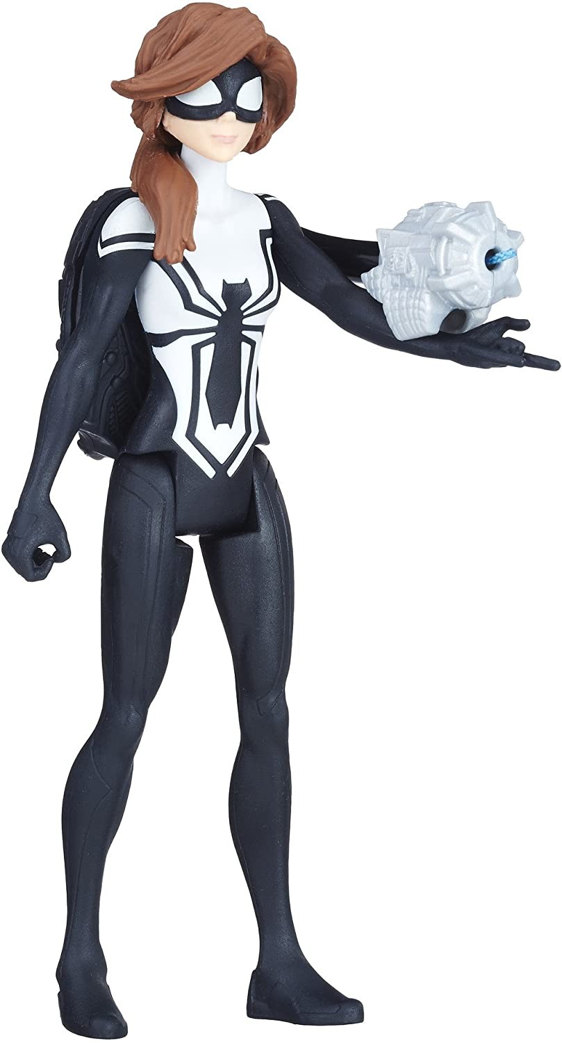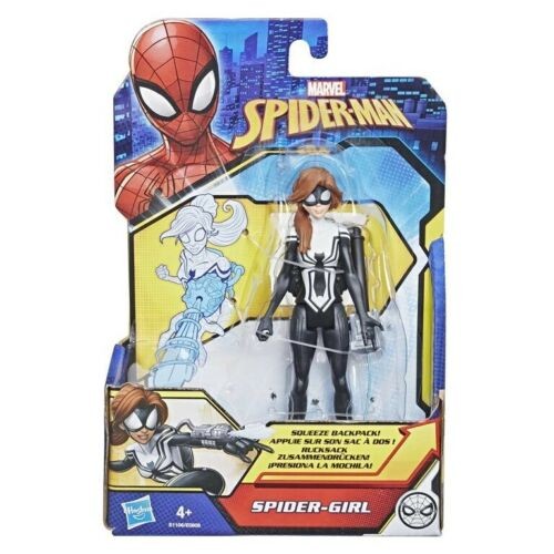 Imagine Spider-Girl using her powerful webs to take down villains with this 6-inch scale Spider-Girl figure, featuring an air-powered web action! Press the air-powered pack to send webs blasting from Spider-Girl’s built-in web shooter! No batteries required! Create the ultimate good versus evil showdowns with Marvel Spider-Man 6-inch-scale figures! (Additional figures each sold separately. Subject to availability). Copyright 2017 Marvel. Hasbro and all related terms are trademarks of Hasbro. Includes figure. Figure scale: 6 inches Ages 4 and up WARNING: CHOKING HAZARD - Small parts may be generated. Not for children under 3 years. 2017 Hasbro. All Rights Reserved. 2017 Marvel.